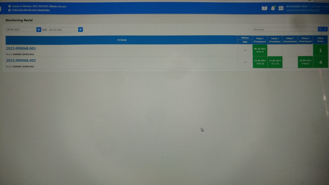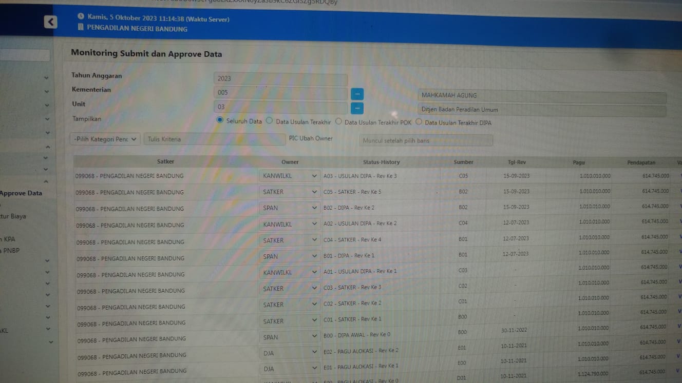 Bandung, 5 Oktober 2023, Pengadilan Negeri Bandung melaksanakan revisi Dipa 01 ABT Renovasi Ruang Sidang III dan RPD Tw IV juga Dipa 03 untuk RPD Tw IV