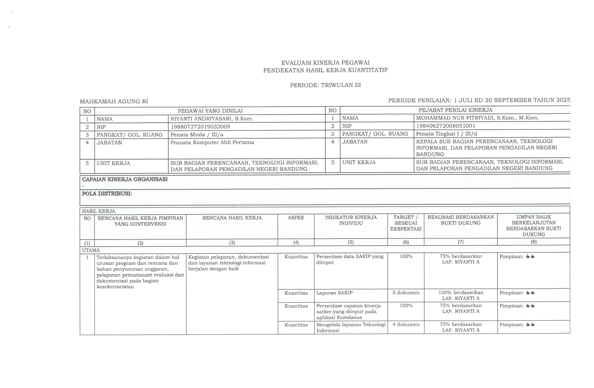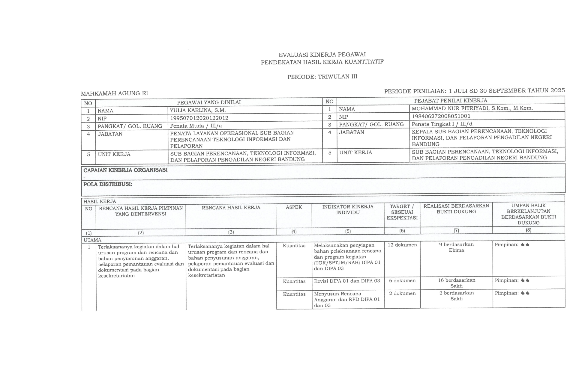 E-Kinerja Triwulan III Tahun 2025 Sub Bagian Perencanaan, Teknologi Informasi, dan Pelaporan