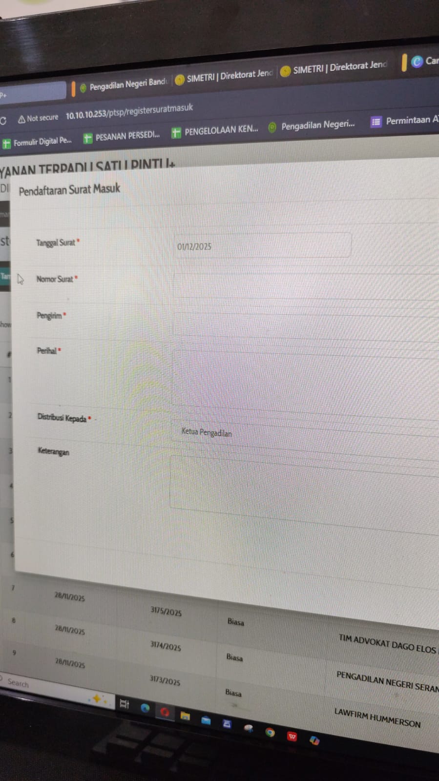 Keterangan Gambar : Error pada Aplikasi PTSP