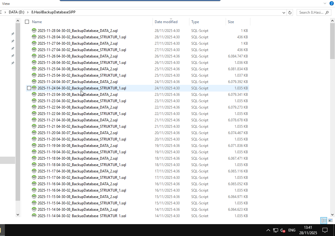 Pada tanggal 2 Desember 2025 telah dilakukan Back Up Aplikasi dan Back Up Database Bulan November 2025.
