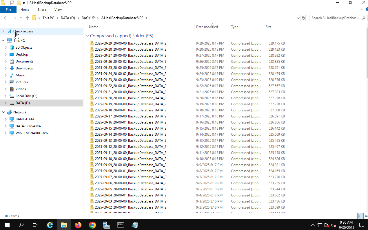 Pada tanggal 1 Oktober 2025 telah dilakukan Back Up Aplikasi SIPP dan Back Up Database Bulan September 2025.