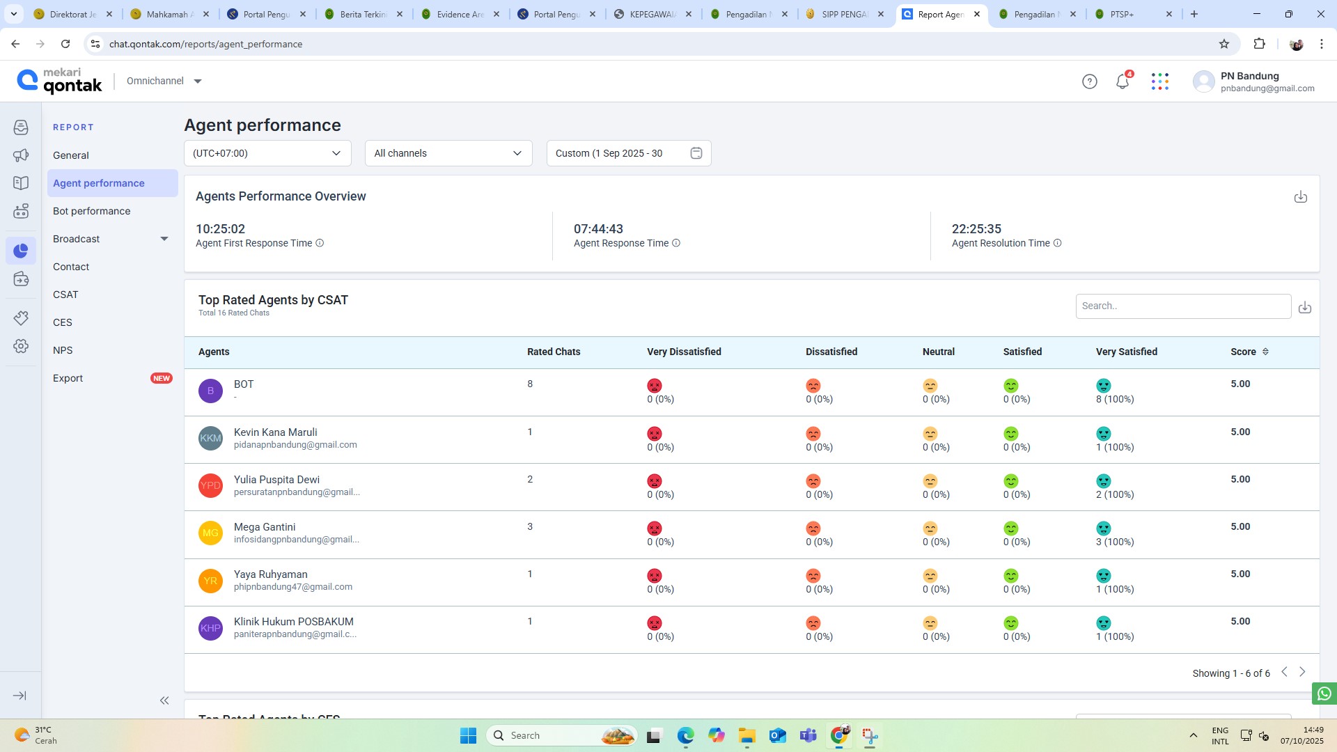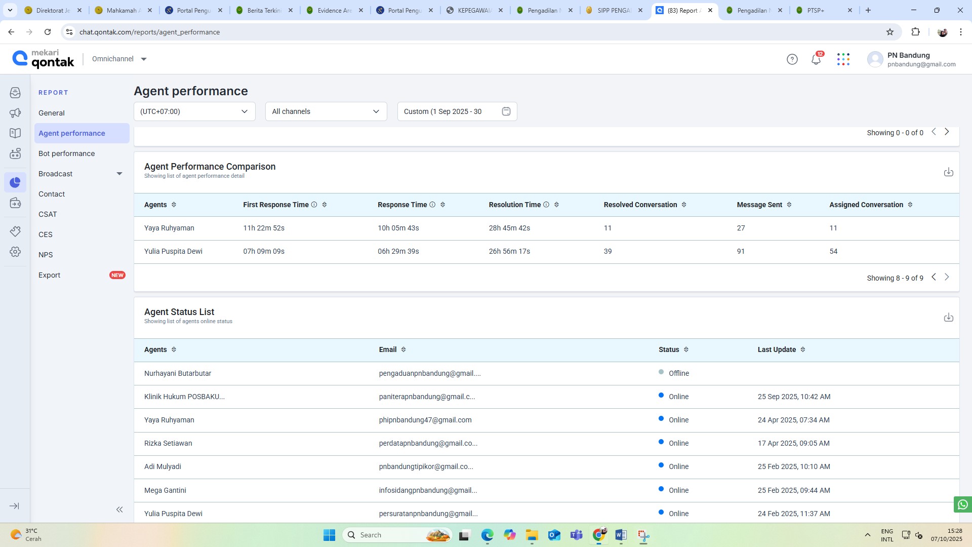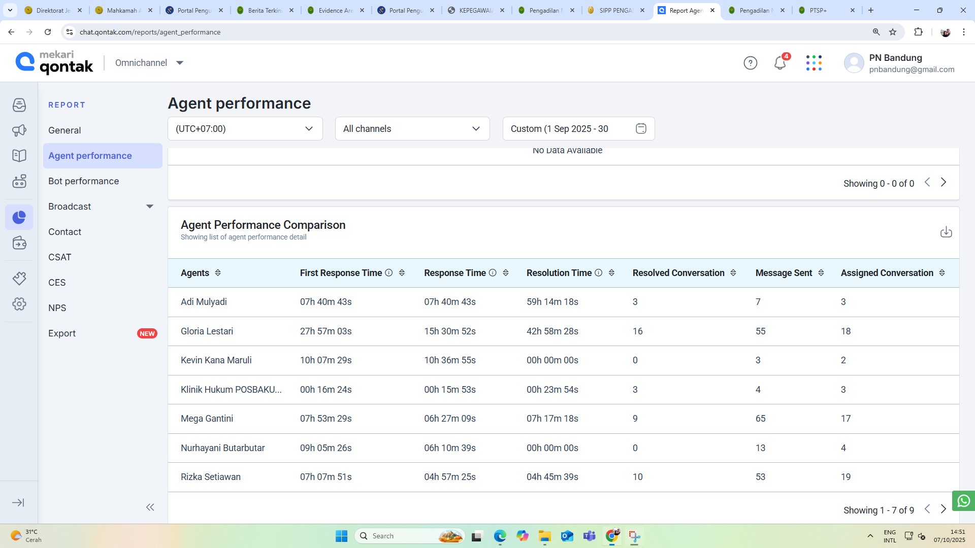 Pada hari Rabu, tanggal 1 Oktober 2025 telah dilaksanakan Monev Aplikasi Tanya Dilan Periode Bulan September 2025, dengan total conversation sebanyak 300 conversation.