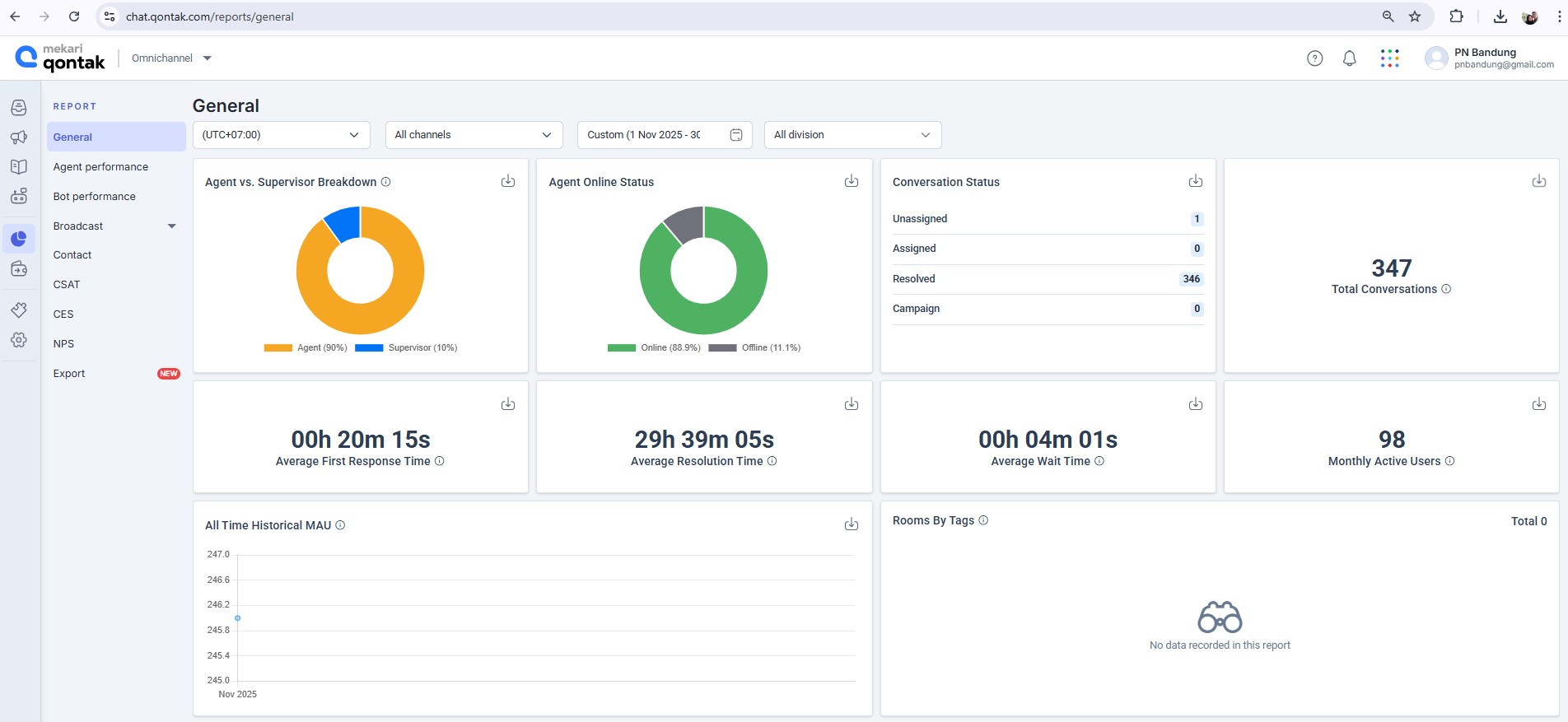 Pada hari Selasa, tanggal 9 Desember 2025 telah dilaksanakan Monev Aplikasi Tanya Dilan Periode Bulan November 2025, dengan total conversation sebanyak 347 conversation