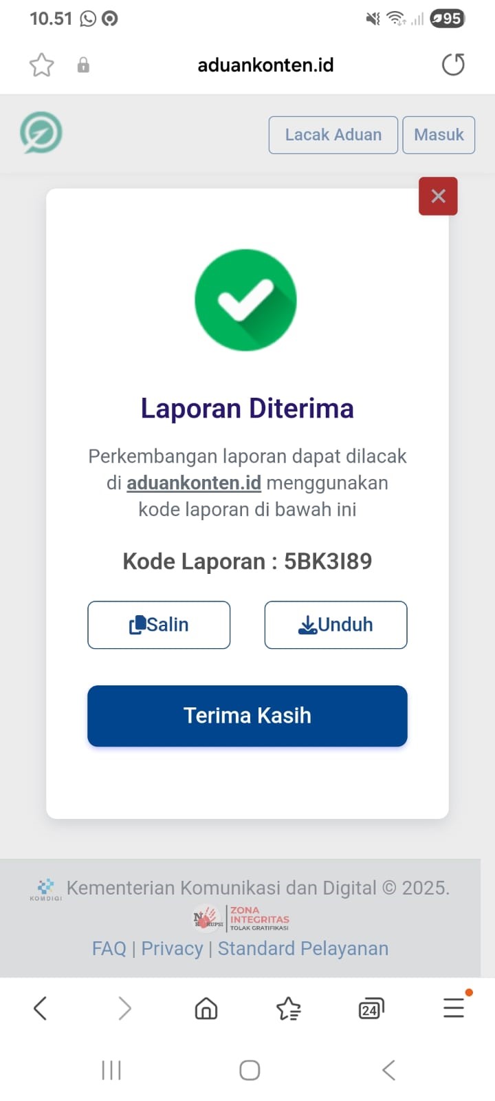 Rekomendasi : Lapor ke Kepolisian dan Komdigi