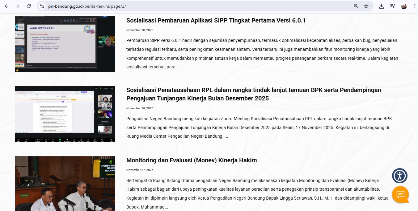 Monev Website PN Bandung Periode Bulan November 2025