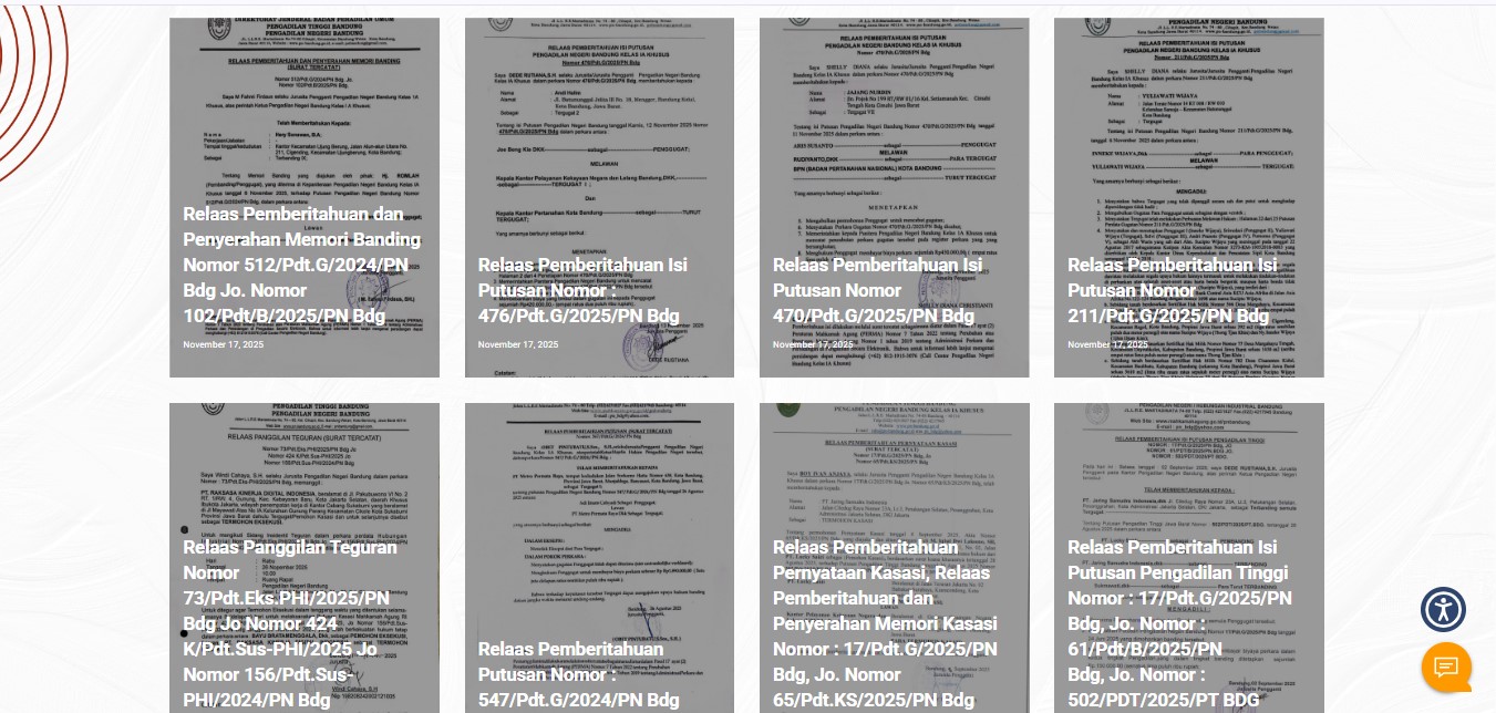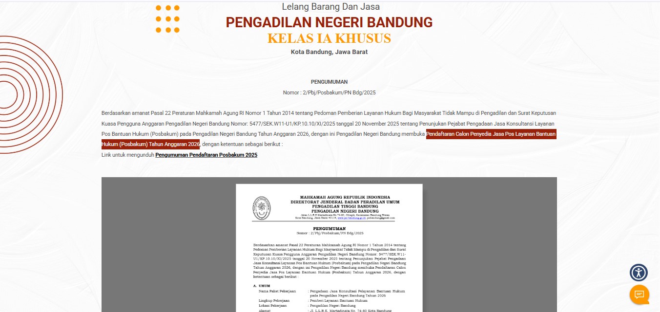 Telah diumumkan pada Website PN Bandung mengenai