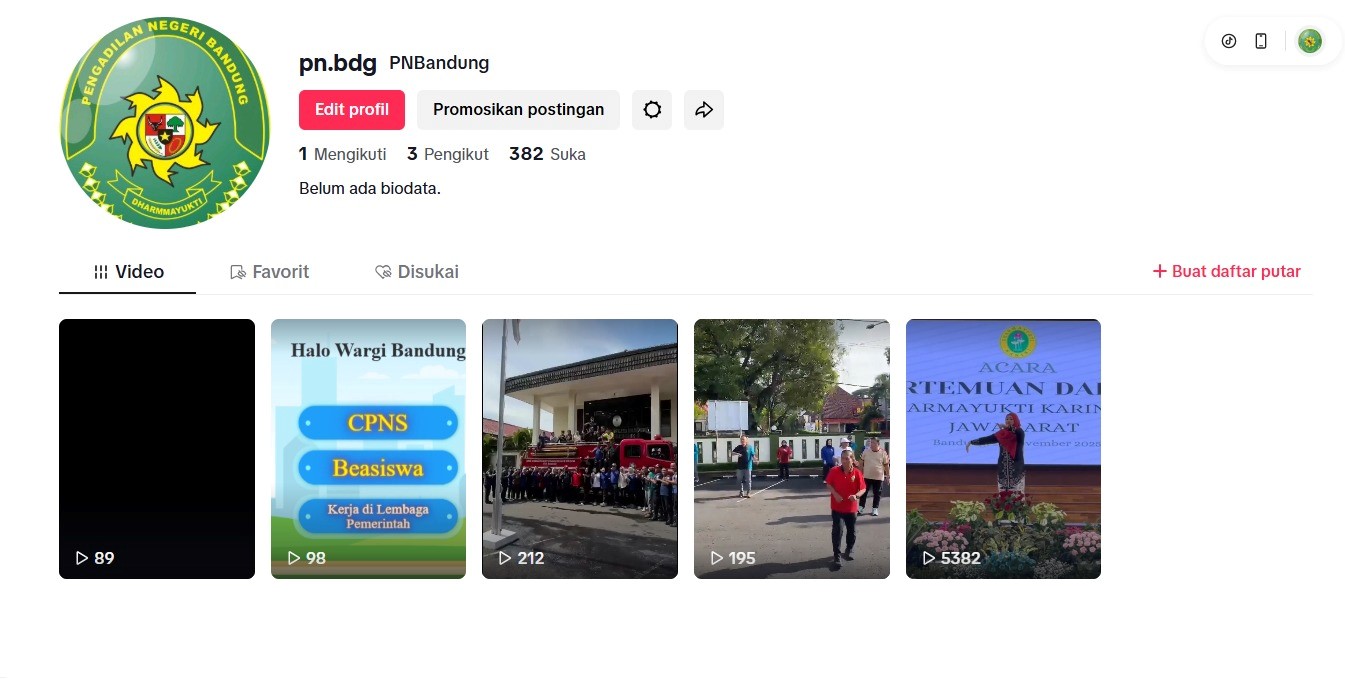 Telah dibuat akun media sosial Tiktok PN Bandung