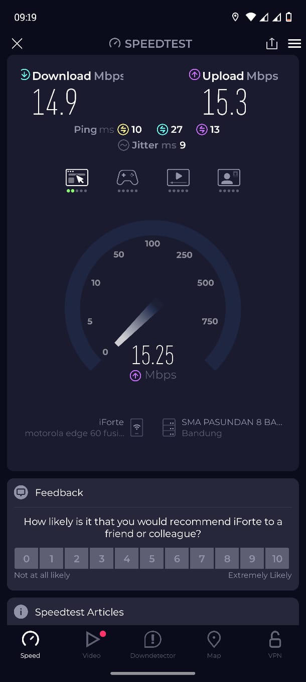 Pada hari Rabu, tanggal 17 September 2025, telah dilakukan pengecekan internet pada bagian Juru Sita, dengan hasil pengecekan internet berjalan dengan lancar, kecepatan Download 14,9 Mbps dan kecepatan Upload 15,3 Mbps.