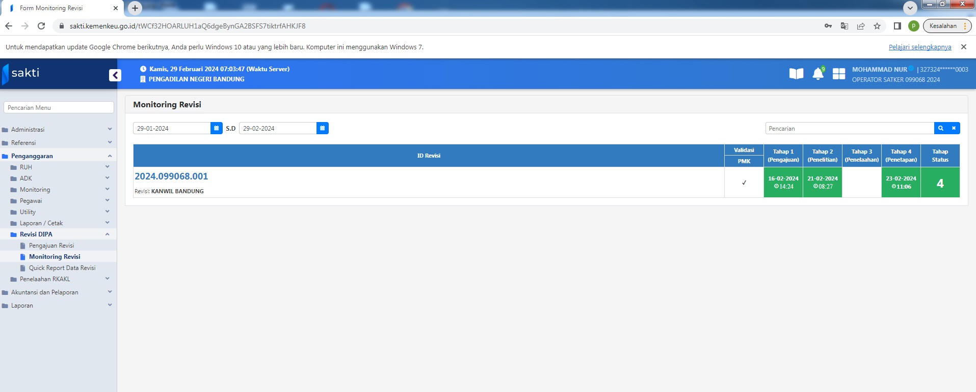 Bandung, 16 Februari 2024 Sub Bag Perencanaan, TI dan Pelaporan melaksanakan pelaporan RPD Triwulan I tahun 2024. untuk DIPA 01 dan 03