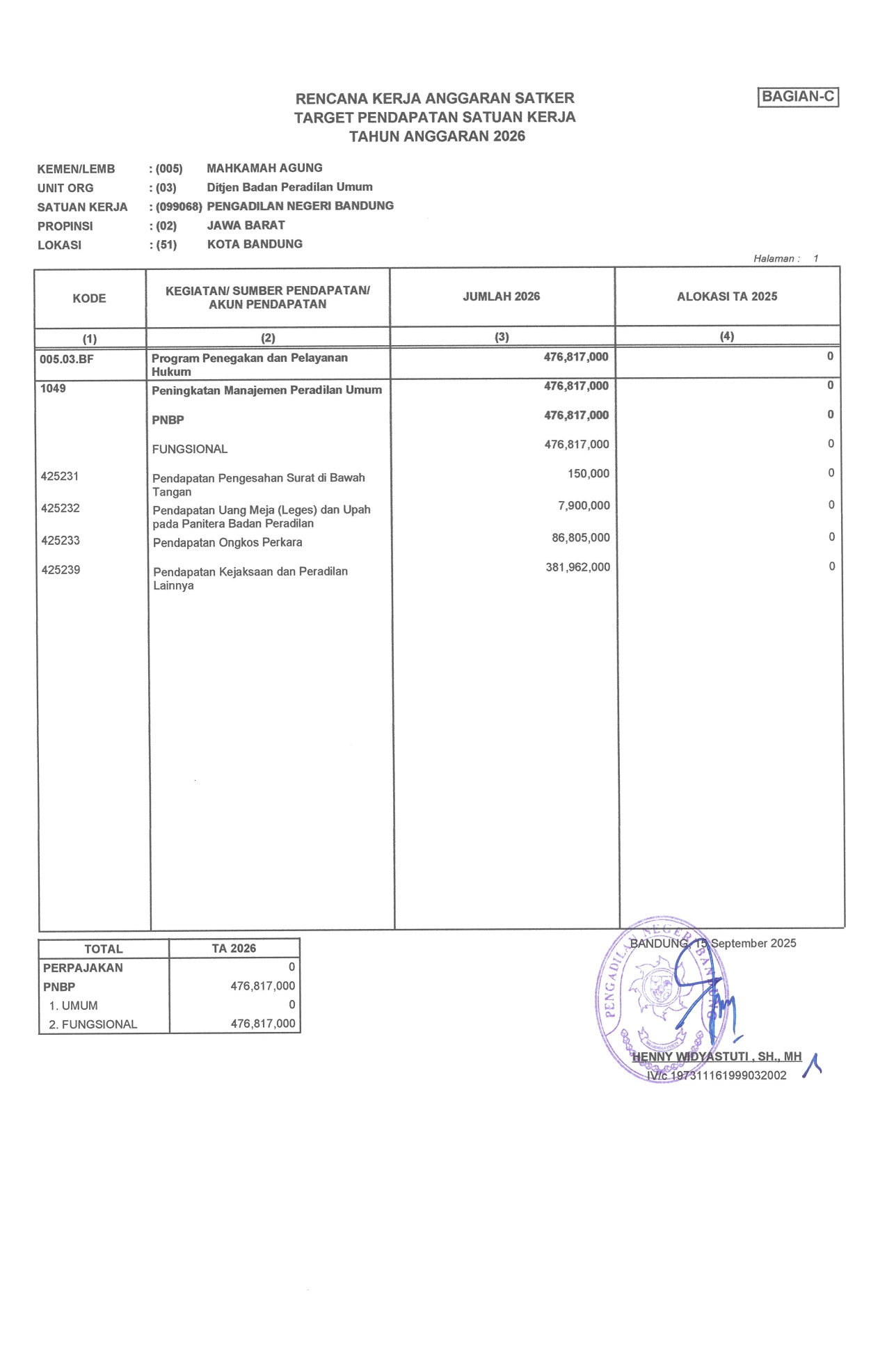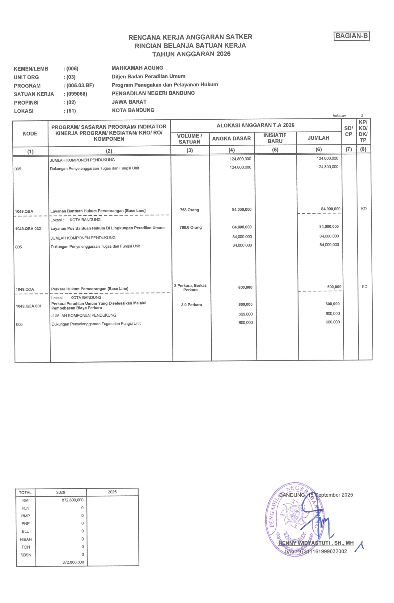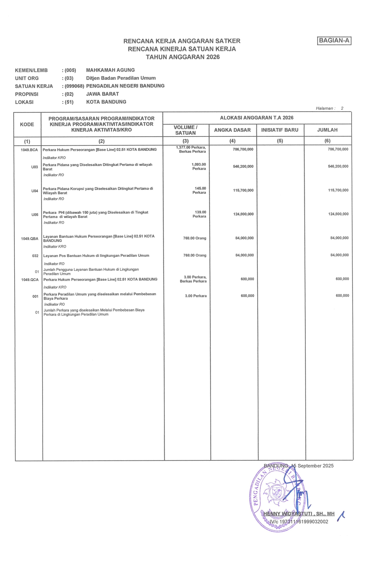 Keterangan Gambar : Rencana Kerja Anggaran Satker Tahun 2026
