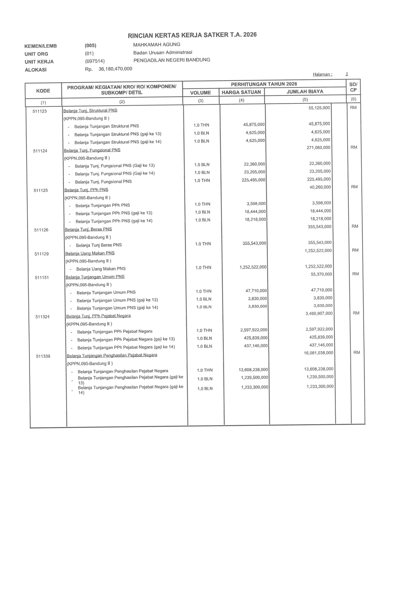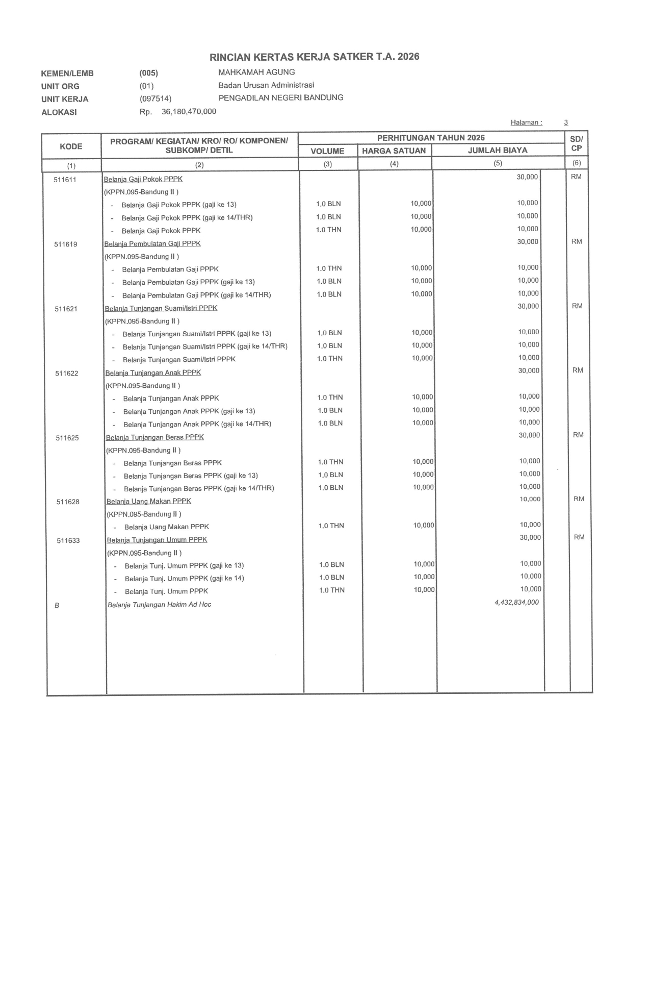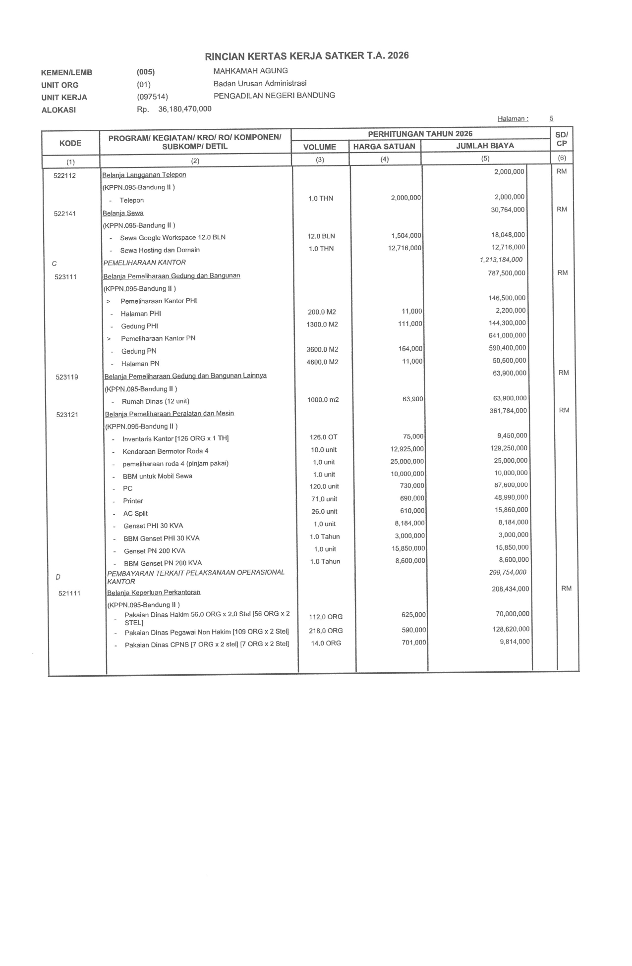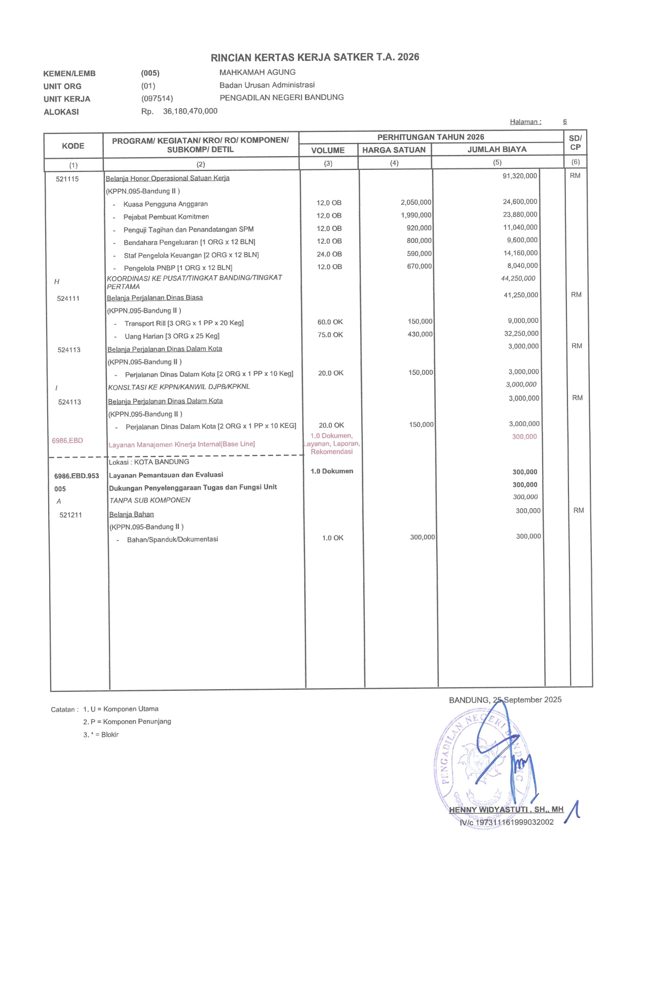 Pada tanggal 25 September 2025, telah disusun Pagu Anggaran 01 untuk Tahun Anggaran 2026 pada Aplikasi SAKTI