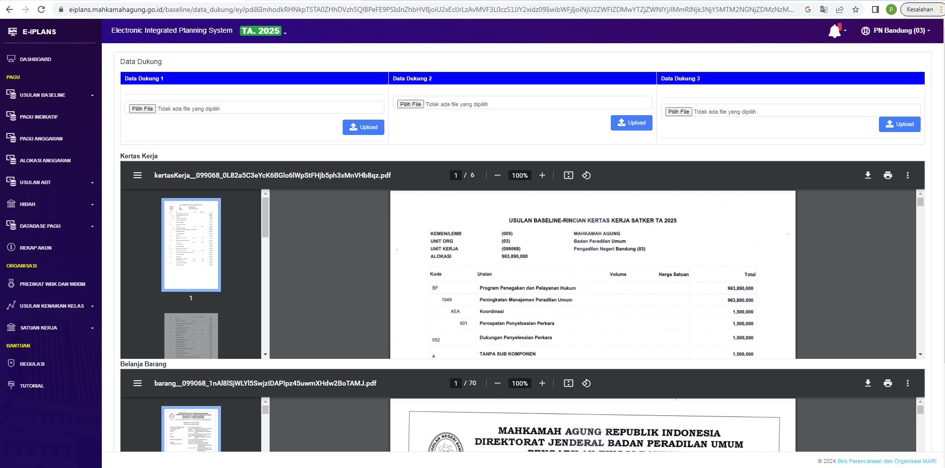 Bandung, 18 Januari 2023 Kasub Bag PTIP melaksanakan pengiriman rencana anggaran 03 TA 2025 melalui aplikasi Eiplans Mahkamah Agung RI