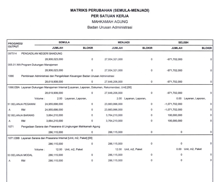 Bandung, 22 September 2023, Pengadilan Negeri Bandung mengajukan Revisi Belanja Pegawai dan Belanja Barang Dipa 01, dengan Kelebihan Belanja Pegawai 2023 1,7 M dan mendapat Tambahan Belanja Pemeliharaan Gedung 100 Jt.