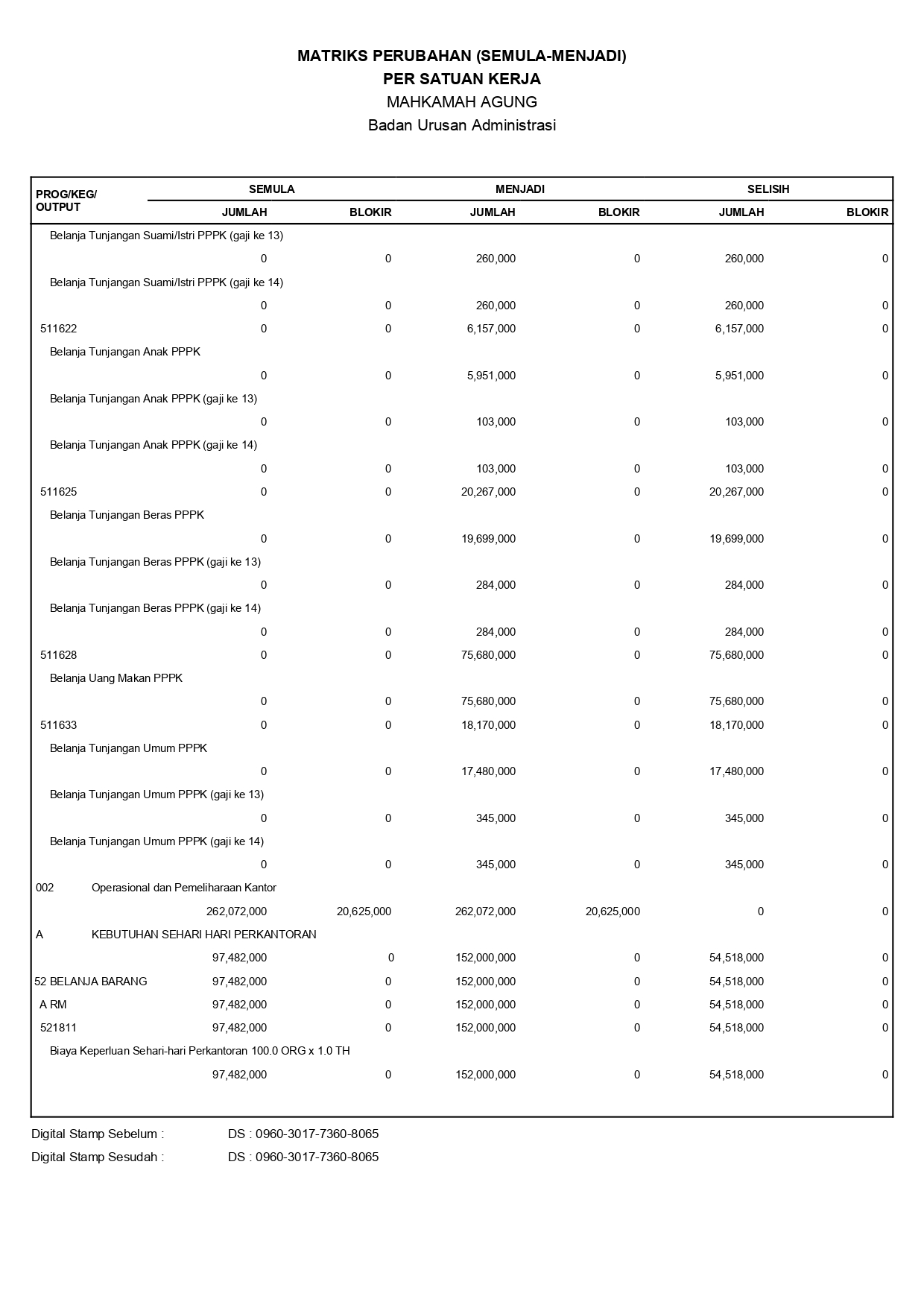 - Perubahan atau pergeseran rincian anggaran dalam hal pagu tetap