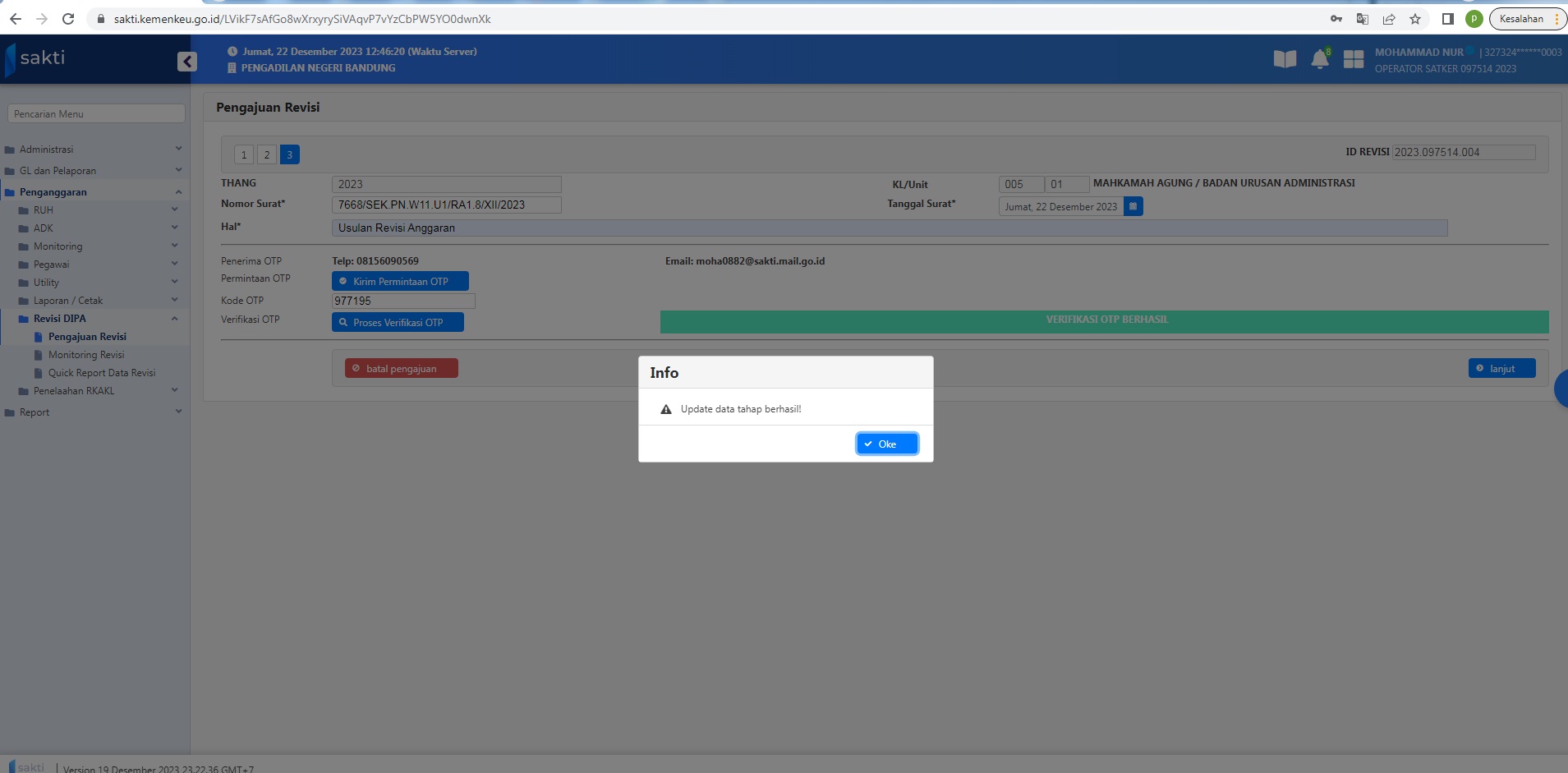 Bandung, 22 Desember 2023 Pengadilan Negeri Bandung Melaksanakan Revisi TW IV TA 2023, meliputi RPD dan Pagu Minus untuk tahun anggaran 2023