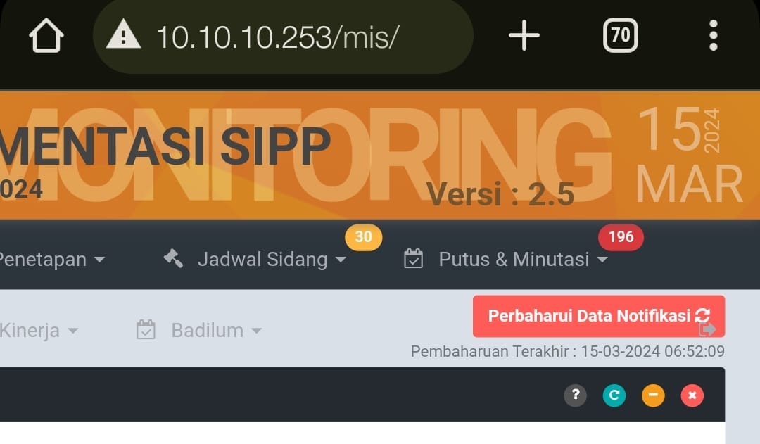Pada Hari ini Sub Bagian PTIP melaksanakan update MIS 2.5