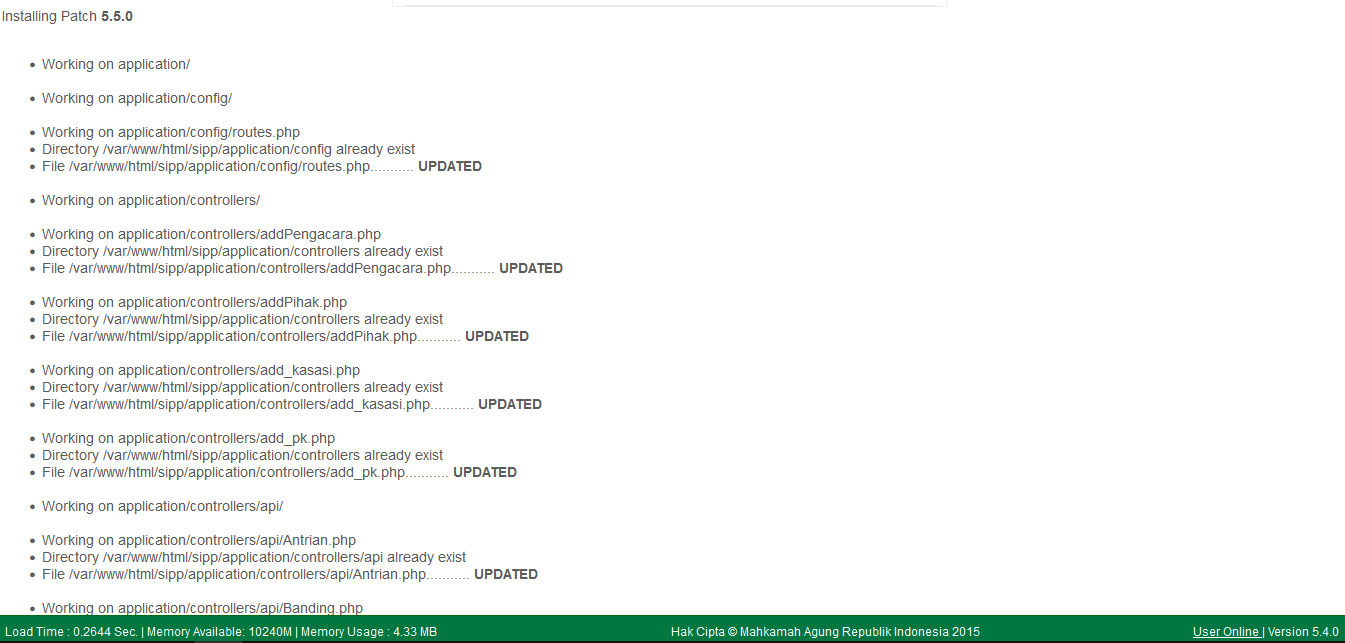 Pada Hari ini Sub Bag PTIP melaksanakan Upgrade Versi SIPP 5.5.0